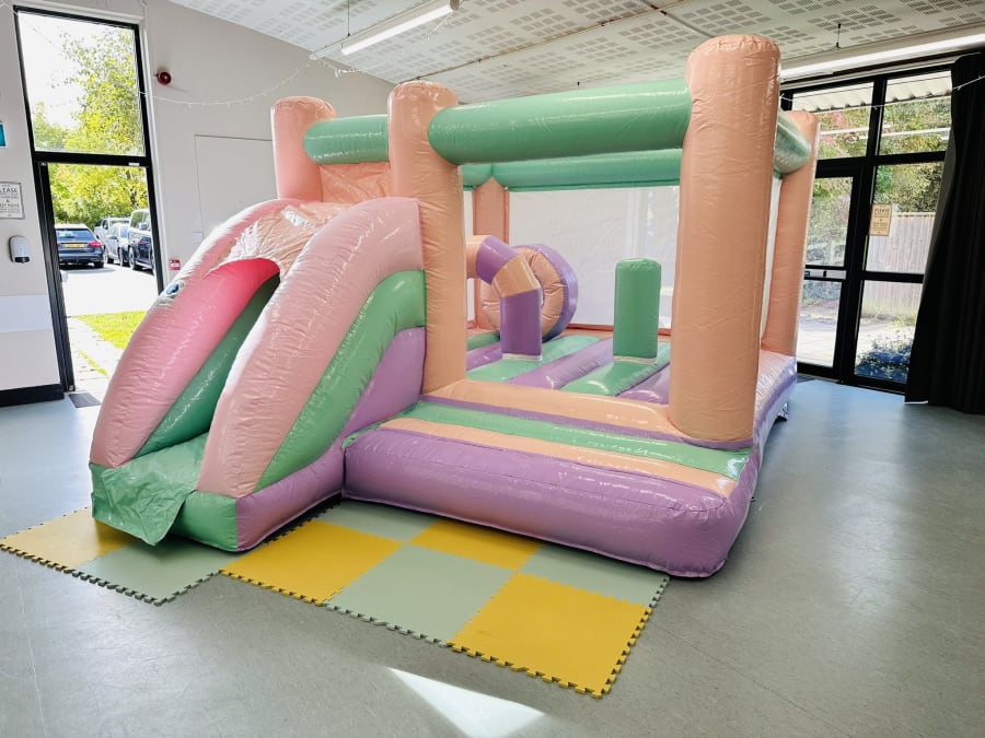 Introducing the Midi Pastel Bouncy Castle, the perfect addition to any event looking to create a fun and memorable experience for children. This enchanting pastel inflatable, complete with a mini slide and biff bash posts, is ideal for birthday parties, children's events, and special occasions like christenings and baby showers.